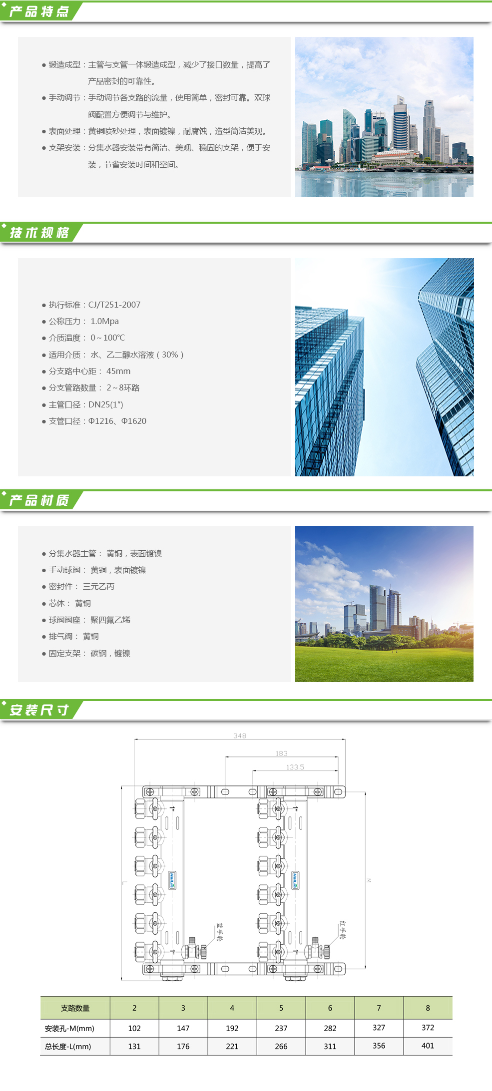 TH33系列分集水器為銅制整體型分集水器,適用于地板采暖系統(tǒng),控制輻射地板采暖系統(tǒng)的熱能。分集水器各支路均采用雙球閥控制,可以根據(jù)管道介質(zhì)流量的需要自行調(diào)節(jié)閥門的開啟角度,如果需要升高室溫,則閥門開啟角度增大;降低室溫,則閥門開啟角度減少;房間無人員停留時,則可以關(guān)閉閥門以達(dá)到節(jié)能的目的。本品優(yōu)點在于結(jié)構(gòu)簡單,造型美觀,占用空間尺寸小,價格便宜;缺點是不能實現(xiàn)自動控制。