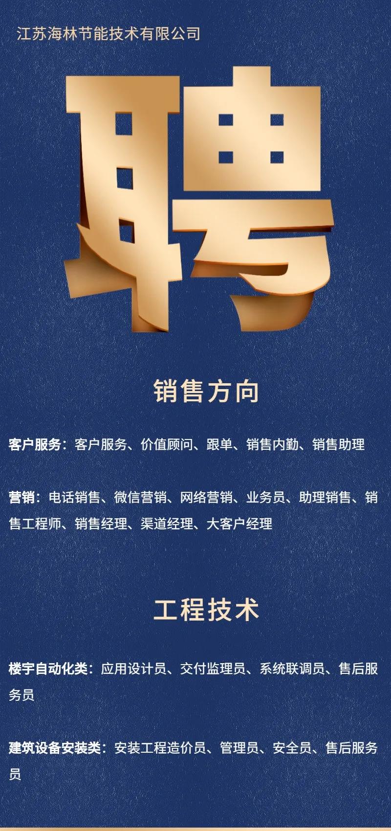 江蘇海林本期熱招職位火熱發布,我們期待優秀的你加入,共同推進公司的發展進程。
