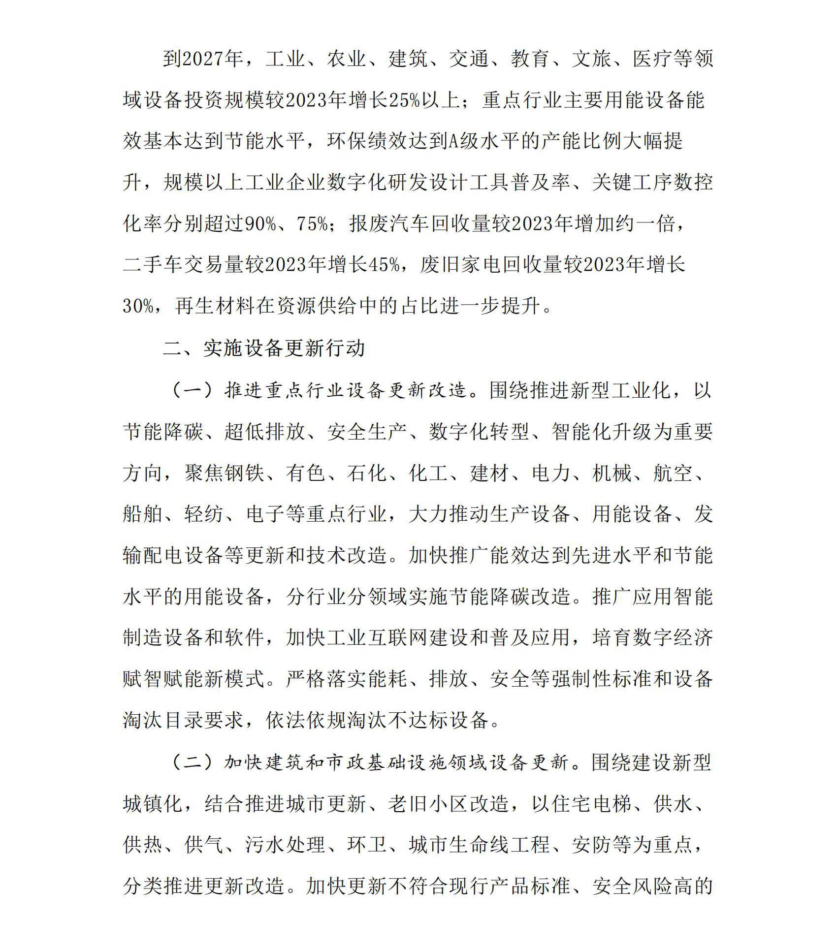通知中行動方案(二)要求加快建筑和市政基礎(chǔ)設(shè)施領(lǐng)域設(shè)備更新